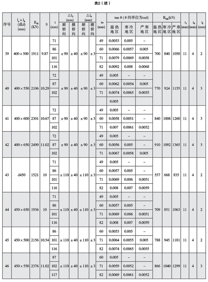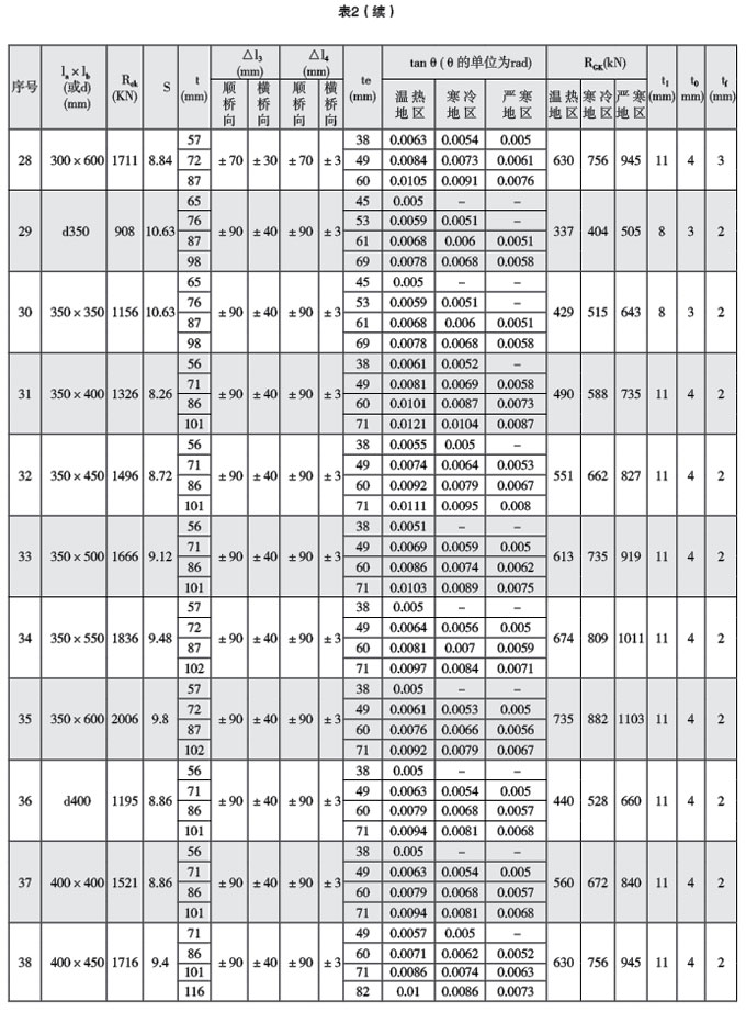 2.3GJZF4、GYZF4規(guī)格系列支座主要附近尺寸
